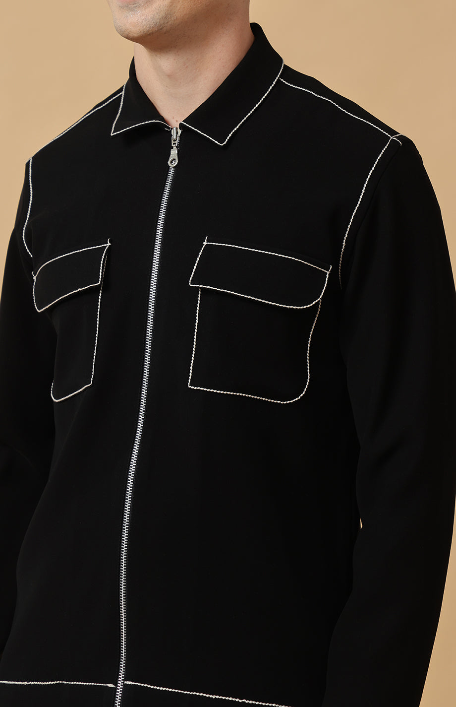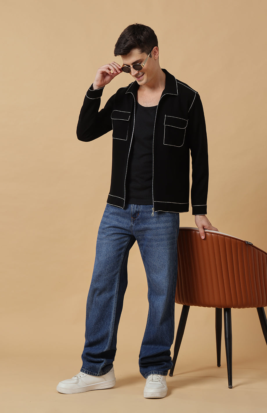 Stay anchored in style with this sleek black over jacket! Featuring a smooth zipper front and versatile layering design, it's your go-to piece for effortless cool. Whether you're dressing up a casual tee or layering over a hoodie, this jacket keeps you looking sharp while staying comfortable. Perfect for those moments when you need an extra layer with serious attitude.